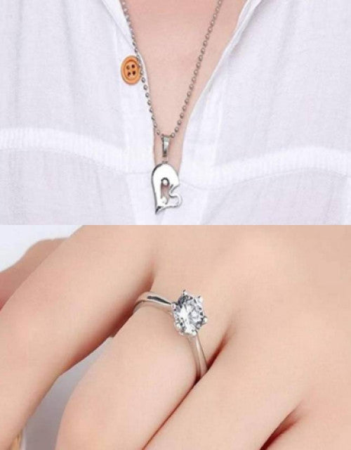 Couple Special Ring Cubic Zirconia Stainless Steel Pendant Set