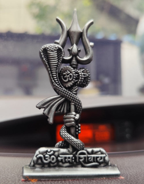 Trishul with Snake Shiv Ji Idol | Om Namah Shivay Copper Finish Showpiece for Home Temple & Car Dashboard