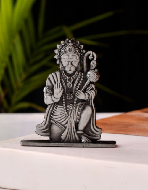 Silver Finish Hanuman Ji Idol | Bajrangbali Murti for Home Temple, Car Dashboard & Gifting