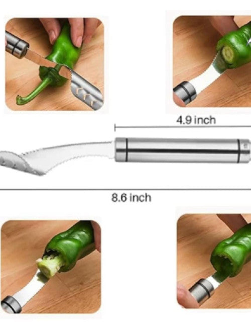 Stainless Steel Chili Corer Pepper Seed Remover Knife with Serrated Edge Barbecue Tool