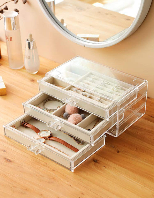 Earring Jewelry Organizer with 3 Drawers, Clear Acrylic Jewelry Box for Women