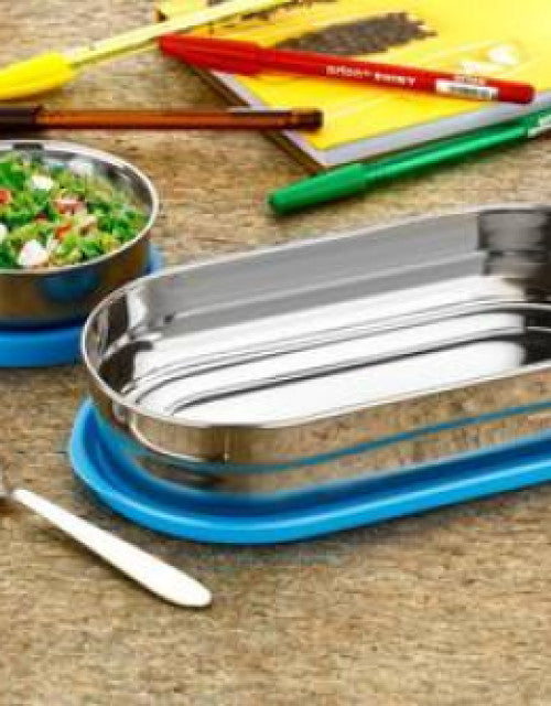 Stainless Steel Plain Blue with Silver Color Lunch Box